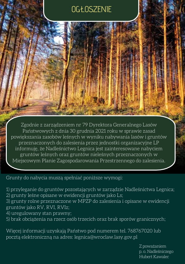 Ogłoszenie dotyczące nabywania lasów lub gruntów do zalesienia